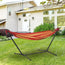 This Outsunny portable hammock with modern shape and multicolor stripe design, can be an ideal addition to your patio, yard or garden. No more searching for the perfect tree to hang your hammock, this free standing hammock supported by a freestanding frame. Adjustable height and portable design bring more convenience for using. With this hammock with frame, you can take comfortable naps on your porch, under a tree or by the pool for hours of relaxation.