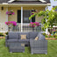 This Outsunny rattan furniture set allows you to rest and relax outdoors. Rust-resistant steel frames make strong pieces, with plastic wicker for a beautiful and durable rattan look. Seat and back cushions for comfort. Tempered glass tabletop for a sleek look - easy to maintain.