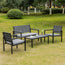 Look to the comfortable life with the aluminium garden furniture sets from Outsunny. Included is a loveseat, two chairs and a coffee table, providing plenty of room for people to sit together. Made from sturdy steel, the frame of the patio set is solid and will completely support you. The tabletop features wood grain texture to stay close to nature. Each seat comes with a soft seat cushion for ultimate comfort. A fantastic addition to your garden and outdoor areas.