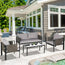 4 PCs Metal Garden Furniture Set With Tempered Glass Coffee Table- Light Grey