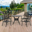 Enjoy your outdoor times with family friends with some vintage charm. Bring this five piece dining set into outdoors spaces small and large. The floral carved design is beautiful. Made from cast aluminium for long-term use. The table features an umbrella hole, so you can all keep shaded from a parasol safely when it's sunny.