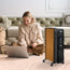 Keep warm with this oil filled radiator from HOMCOM. With 9 heating fins, an adjustable temperature of 7-35 and 3 heating modes, you're in control of the heat you want. Cut down energy costs by choosing ECO mode. The overheating and tip-over function will turn it off safely, so you can enjoy this portable radiator with peace of mind. Move with minimum fuss using the wheels and handle, making sure no room goes cold. Comes complete with a 24 hour timer, setting it on and off whenever you want.